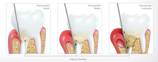 A gengivite não tratada, pode evoluir para periodontite. Com o tempo, a placa bacteriana se alastra e invade a zona abaixo da linha gengival. As toxinas produzidas pelas bactérias da placa irritam as gengivas. As toxinas estimulam uma resposta inflamatória crônica, e os tecidos e ossos que suportam os dentes são destruídos. A gengiva se distancia dos dentes, formando bolsas (espaços entre os dentes e gengivas), que se tornam infectadas. Conforme a doença progride, as bolsas aprofundam e mais tecido gengival e osso de suporte dos dentes são destruídos. Muitas vezes, esse processo destrutivo tem sintomas muito discretos como sangramento ou dentes amolecidos ou migrando de lugar. Se o tratamento não for eficaz, você corre o risco de perder seus dentes.